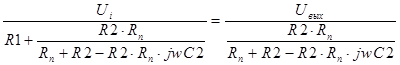 Так как ток через сопротивление R1 и параллельно соединённые: R2, Rn и C2 равен, то напряжение Uвых можно найти из выражения равенства токов: