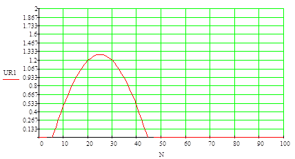 Пример программы для автоматизированного расчета выходного сигнала представлен ниже. График реакции цепи на входное воздействие (рис. 13)