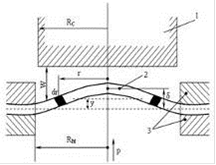 Увеличение чувствительности достигается уменьшением начального зазора между электродами и увеличением размеров датчика. Как видно из рисунка, под действием измеряемого давления мембрана получает переменный прогиб. Наибольшее перемещение имеет центр мембраны, а наименьшее - периферия мембраны. Уравнение, выражающее зависимость хода центра мембраны